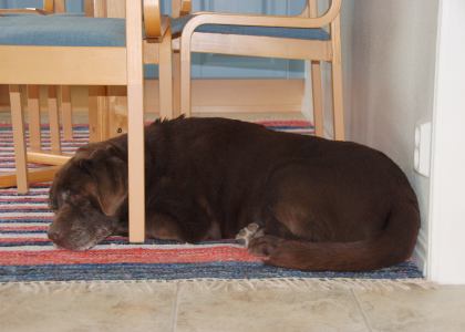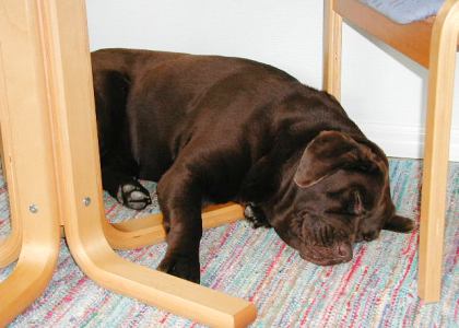 Keittiön pöydän alla on hyvä ottaa torkut 23.06.01 © Susanne Sundman-Lindén |