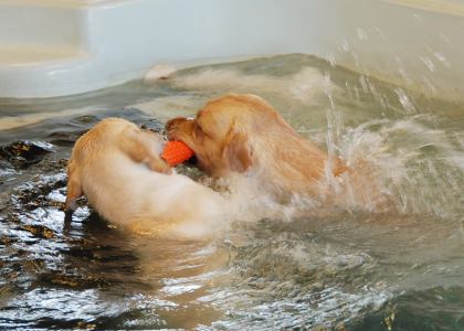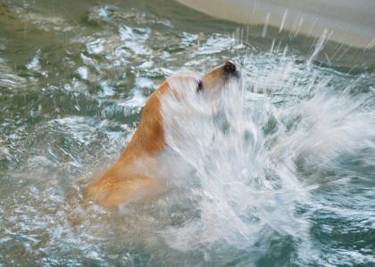 Ensimmäistä kertaa koirauimalassa 14.04.16 © Susanne Sundman-Lindén |